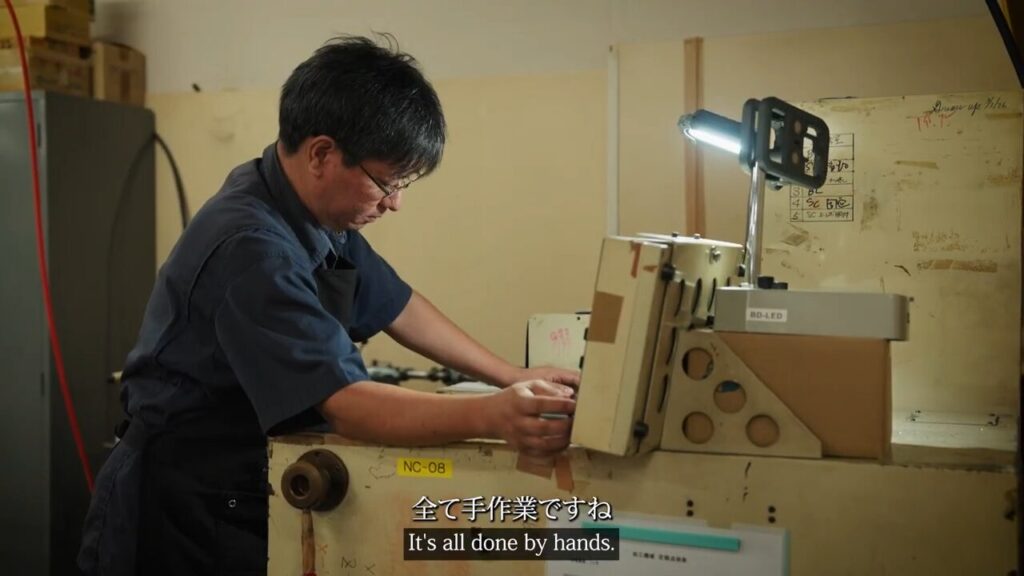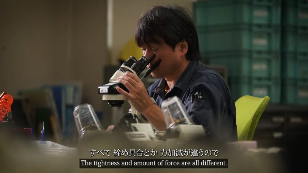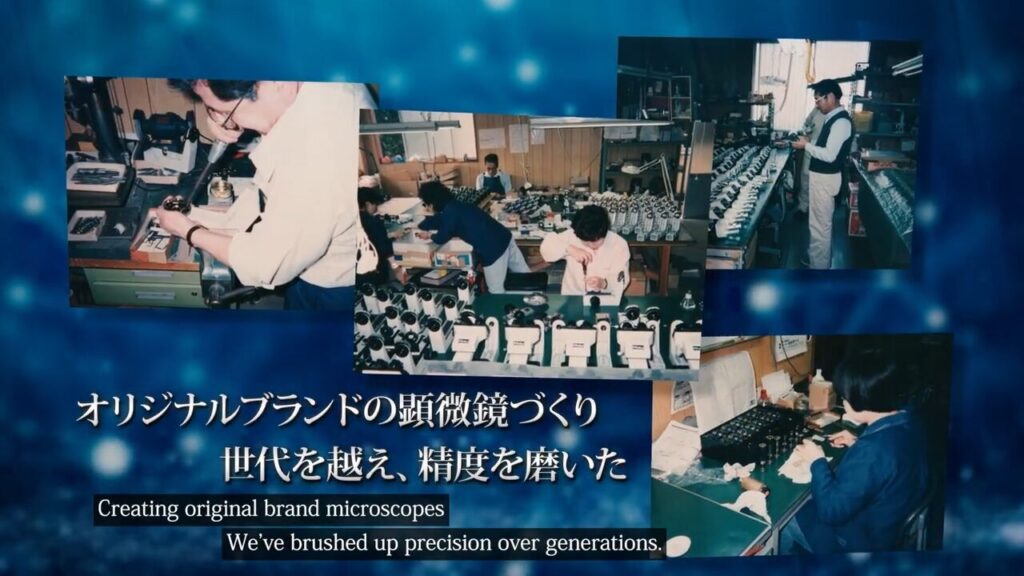 顕微鏡という精密機器を組み立てる、職人の研ぎ澄まされた指先の動き。50年受け継がれてきた技術の凄みは、過度な演出ではなく、職人の眼や手元から、言葉以上の説得力が伝わってきます。