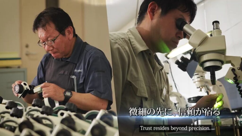 綺麗なイメージ映像を並べるだけでなく、一台一台の顕微鏡に命を吹き込む製造スタッフが、どのような姿勢で製品と向き合っているのか。その「真剣な眼差し」と「飾らない言葉」こそが、メイジテクノ様が50年間守り続けてきた信頼の証であると考え、インタビューと働いているシーンの構成をご提案しました。